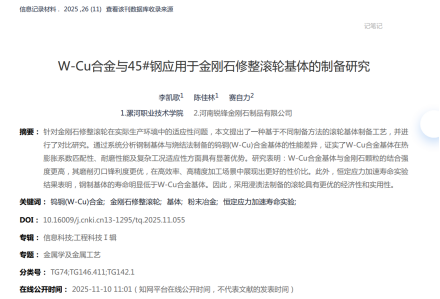 高精度磨削工具校企研发中心研发团队针对基体的研究成果正式发表。企业方可根据研究内容有针对的筛选客户,提高客户拓展效率,降低新客户开发成本。